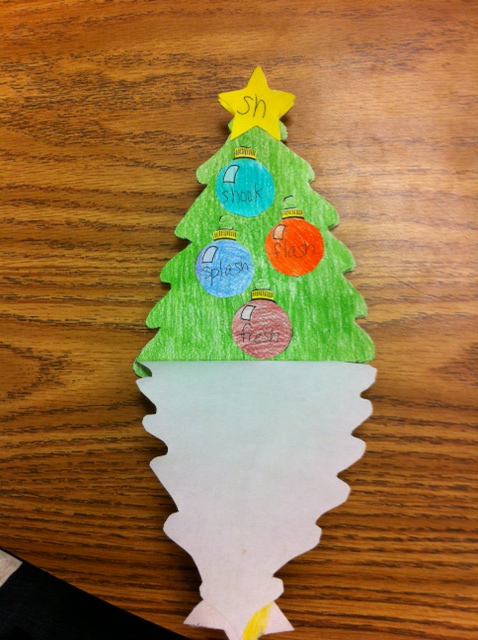 I made each kid four little trees and wrote our spelling words (words with different digraphs in them). The kids colored, cut them out, and sorted them. It was a fun idea.