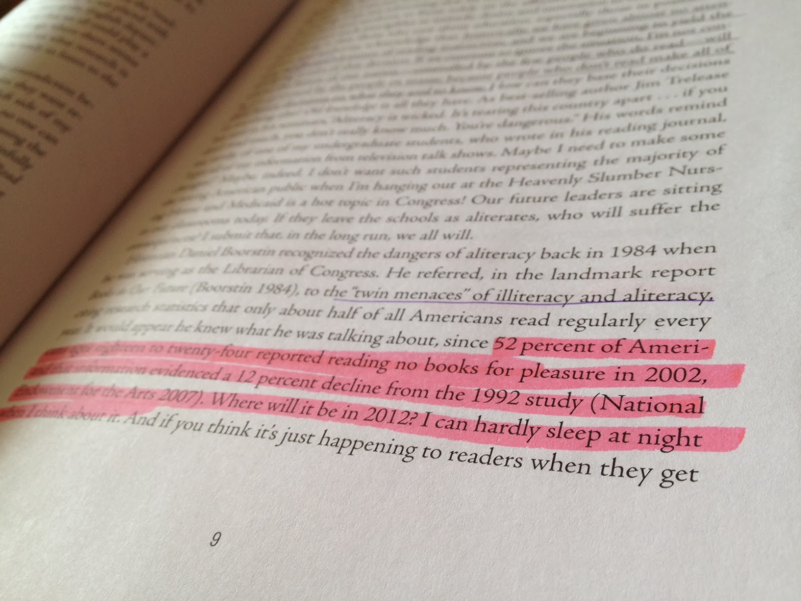 This chapter is basically an argument for us to realize the importance of aliteracy, or people who are able to read but don't. Layne explains that this is more of a danger and issue in America than illiteracy, as a higher percentage of people are aliterate than illiterate.