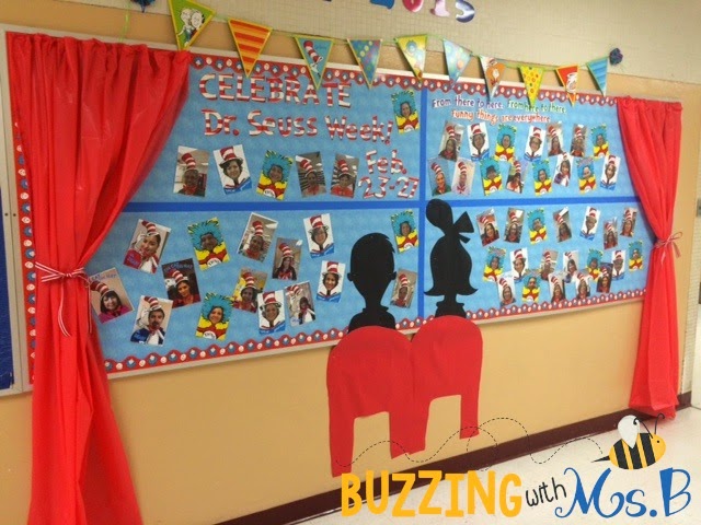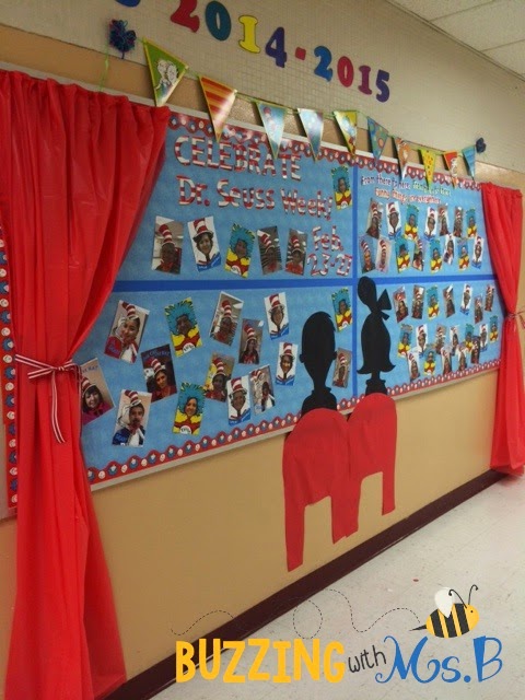 This year, we started out with bulletin boards in preparation for Read Across America (which we are celebrating a week early by the way, so we don't have to beat up all the other literacy coaches and librarians to take their guest readers).