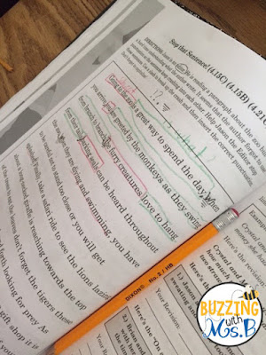 We did our test prep review the day before our big test. We took the whole day and used it to go through some fun, hands-on writing stations! Every student got a fun paper bracelet with an image for each station on it. As they completed a station, we used a hole puncher to mark them!