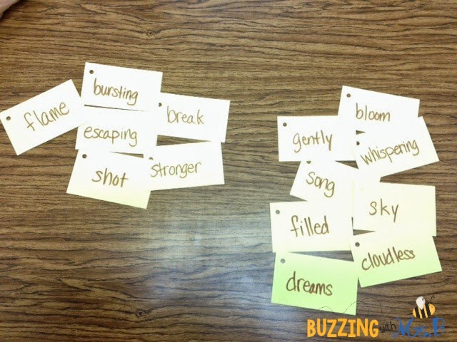 We divided the kids into five groups and gave each group a specific colored marker. The photos were glued on to construction paper and taped to the walls around the room. Each group went to one of the photos and had three minutes to write everything they noticed and thought on the construction paper. They used these speaking and writing stems: