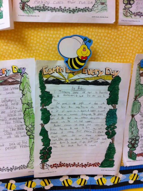 Anyway, as I complain about the healthy weeds growing in my front yard, I would like to share with you our Earth Day writing.