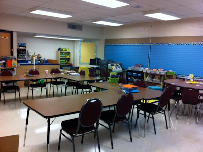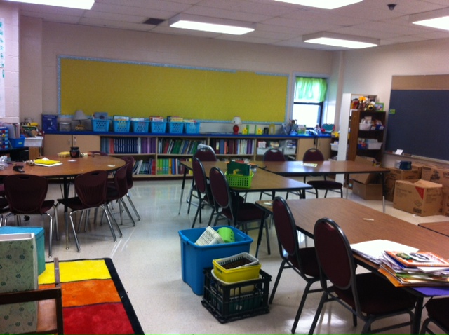 Today was my first full day in my classroom. I had a few hours on Friday, during which I placed the furniture. Several times. I moved the Guided Reading table to the right corner and the computer table to the left. Then I moved the computer to the right corner and the Guided Reading table to the right. And then I did it again. Twice.