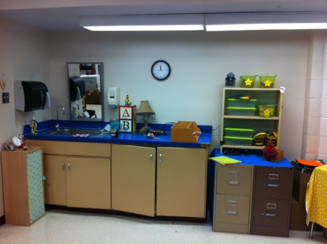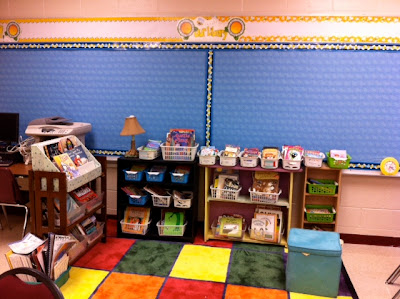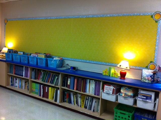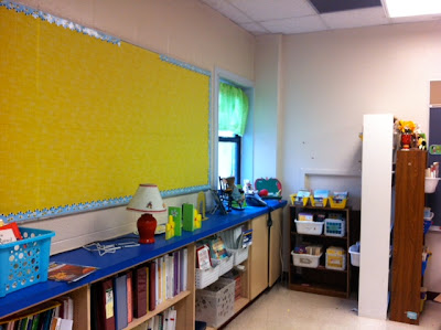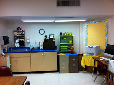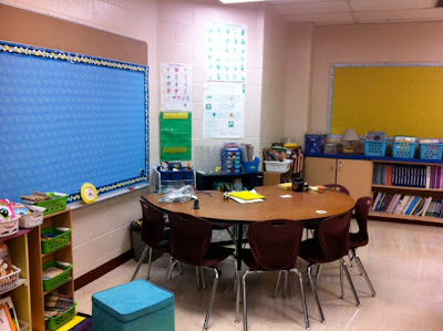 Meeting area for teachers. The far bulletin boards will be covered in yellow with blue border, I think.
