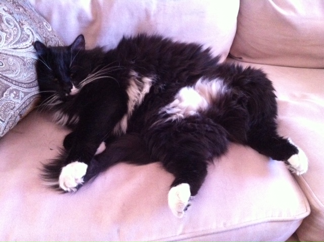 On some days, nothing will do but lounging on the floor, right in the middle of everyone's path.